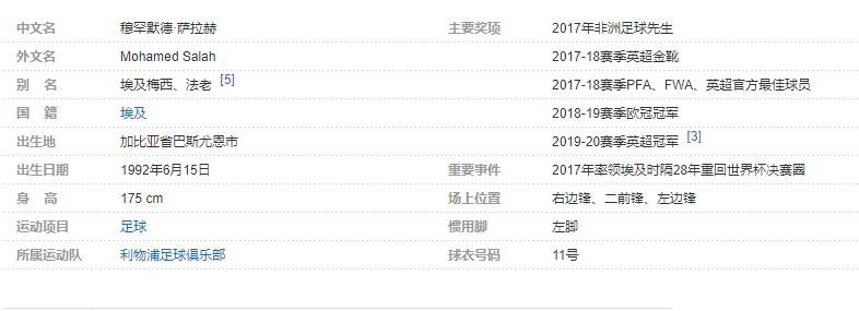 穆罕默德·萨拉赫(Mohamed Salah),1992年6月15日出生于埃及加比亚省巴斯尤恩市,埃及足球运动员,场上司职边锋,效力于英超利物浦足球俱乐部。个人简介: