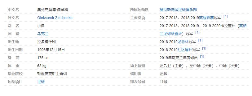 奥列克桑德·津琴科(Oleksandr Zinchenko),1996年12月15日出生于乌克兰拉多梅什利,乌克兰足球运动员,场上司职左后卫,效力于英超的曼彻斯特城足球俱乐部。个人简介: