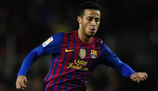 2009年5月7日,蒂亚戈在和马洛卡的比赛中替补登场,完成了自己的一线队首秀。2010年2月20日,在和桑坦德竞技的比赛中,蒂亚戈打进了代表巴萨的首个进球。2010/11赛季,蒂亚戈一共代表巴萨上场了17次,并贡献了3个进球和3个助攻。2011/12赛季,蒂亚戈在和皇马的西班牙超级杯比赛中登场,这是他新赛季的首场比赛。在和比利亚雷亚尔的比赛中,蒂亚戈打入了巴萨新赛季首个西甲进球。12月18日,蒂亚戈帮助球队赢得了世俱杯冠军。