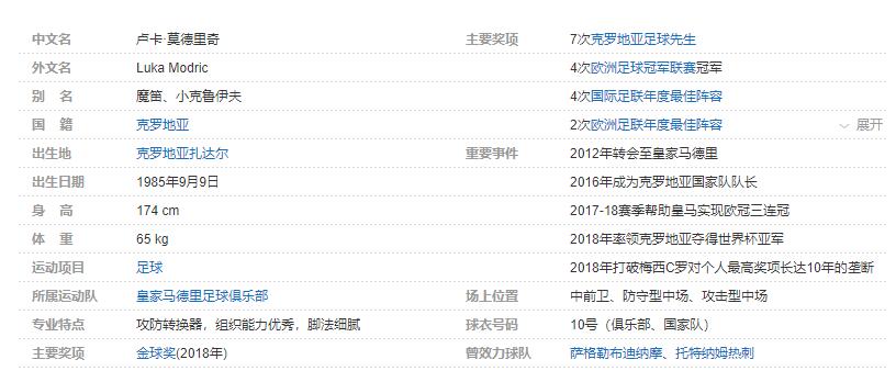 卢卡-莫德里奇个人详细资料简介: