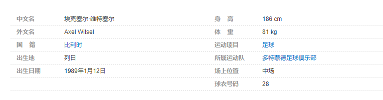 埃克塞尔·维特塞尔(Axel Witsel),1989年1月12日出生于比利时列日,比利时足球运动员,场上司职中场,现效力于多特蒙德足球俱乐部。个人简介