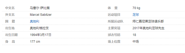 马塞尔·萨比策(Marcel Sabitzer),1994年3月17日出生于格拉茨(Graz),奥地利职业足球运动员,司职中场,现效力于德国的拜仁慕尼黑足球俱乐部。