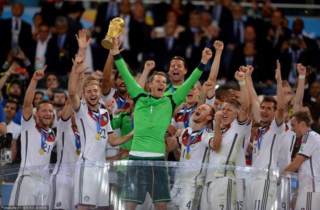 2014年夏天,诺伊尔以主力门将出战巴西世界杯,以7场仅失4球的精彩表现帮助球队第四度加冕世界杯冠军,个人也获得了象征着赛事最佳门将的金手套奖,出击范围比较大的他也被认为重新定义了门将,是集门将和后卫于一身的“门卫”。