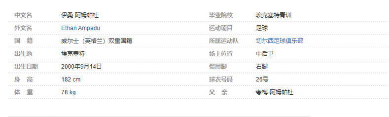 伊桑·阿姆帕杜(Ethan Ampadu),全名:伊桑·夸梅·阿姆帕杜(Ethan Kwame Ampadu),2000年9月14日出生于英格兰埃克塞特,威尔士足球运动员,场上司职中后卫,租借效力于英格兰足球超级联赛的谢菲尔德联足球俱乐部。个人简介