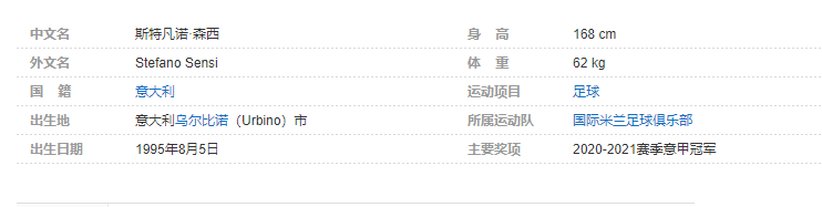 斯特凡诺·森西(Stefano Sensi),1995年8月5日出生于意大利乌尔比诺(Urbino)市 ,意大利足球运动员,司职中场,现效力于国际米兰足球俱乐部。 2020-2021赛季,森西帮助国际米兰夺得意甲冠军。个人简介