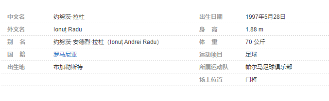 约努茨·拉杜(Ionuț Radu)(Ionuț的罗马尼亚语发音译名是约努茨),全名约努茨·安德烈·拉杜(Ionuț Andrei Radu),1997年5月28日出生于罗马尼亚布加勒斯特,罗马尼亚职业足球运动员,场上司职门将,现效力于国际米兰足球俱乐部。个人简介