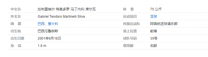 加布里埃尔·马丁内利(Gabriel Martinelli),2001年6月18日出生于巴西瓜鲁柳斯,巴西足球运动员,司职前锋,现效力于阿森纳足球俱乐部。个人简介