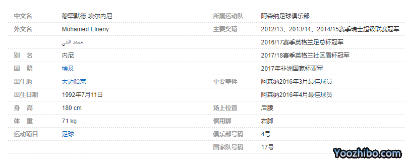 穆罕默德·埃尔内尼(Mohamed Elneny),1992年7月11日出生于埃及大迈哈莱,埃及足球运动员,场上司职后腰,效力于英超的阿森纳足球俱乐部。个人简介
