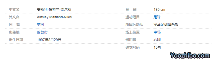 安斯利·梅特兰-奈尔斯(Ainsley Maitland-Niles),1997年8月29日出生于英国伦敦市,英格兰足球运动员,司职中场,效力于罗马足球俱乐部。个人简介