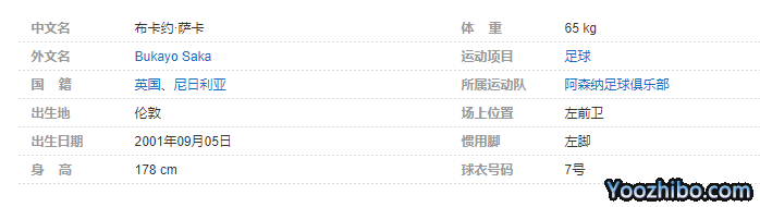 布卡约·萨卡(Bukayo Saka),2001年9月5日出生于英格兰伦敦,英格兰足球运动员,场上司职左前卫,现效力于英格兰足球超级联赛的阿森纳足球俱乐部。个人简介