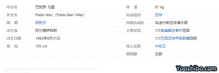 巴勃罗·马里(Pablo Marí),全名巴勃罗·马里·比拉尔(Pablo Marí Villar),1993年8月31日出生于西班牙穆萨菲斯,西班牙足球运动员,场上司职中后卫,现效力于意大利的乌迪内斯足球俱乐部。个人简介