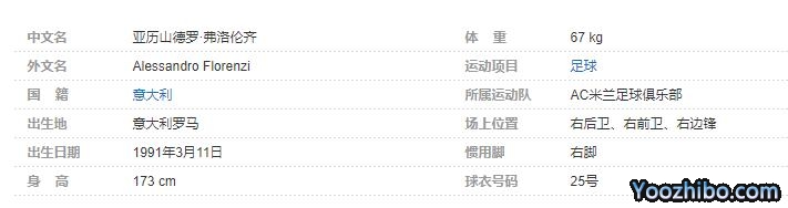 亚历山德罗·弗洛伦齐(Alessandro Florenzi),1991年3月11日出生于意大利罗马,意大利足球运动员,场上司职右后卫,亦可胜任右前卫、右边锋,现效力于意大利足球甲级联赛的AC米兰足球俱乐部。个人简介