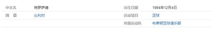 特罗萨德,1994年12月4日出生,比利时职业足球运动员,司职前锋,现效力于英超的布莱顿足球俱乐部。