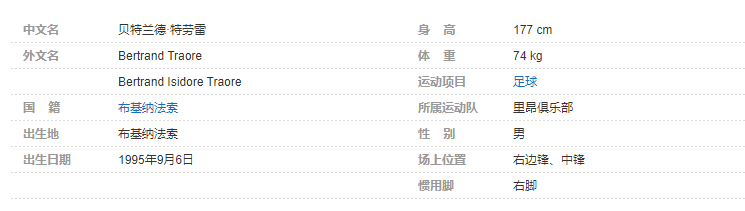 贝特兰德·特劳雷(Bertrand Traoré ),1995年9月6日出生于布基纳法索,布基纳法索职业足球运动员,场上司职前卫,效力于里昂足球俱乐部。个人简介