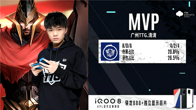 双方常规开局。2分14秒广州TTG主宰处击杀澜拿到一血。4分23秒佛山GK野区击杀橘右京。5分18秒广州TTG对抗路击杀东皇太一。6分06秒广州TTG野区击杀东皇太一。6分37秒广州TTG拿下暴君。7分28秒广州TTG摧毁敌方对抗路二塔并在团战中打出1换2。11分08秒中路团战广州TTG打出0换5。11分32秒广州TTG摧毁敌方发育路高地塔。11分38秒广州TTG摧毁敌方水晶拿下比赛。