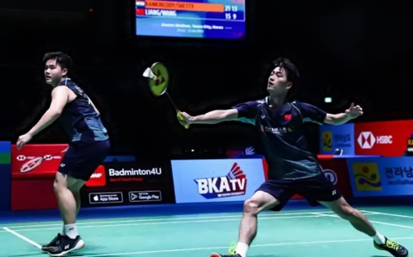 第一局,这两对组合可以说各有优势,阿山和塞蒂亚万的大赛经验更加丰富,而且技术也愈发全面,而梁伟铿王昶的冲劲更足,进攻能力和速度方面优势更大,在首局比赛开打后,双方就在竭尽全力抢节奏,梁王组合一上来就全力提速,而阿山和塞蒂亚万则在想尽一切办法降速,想要把比赛拖入相对较慢的相持阶段,在两对组合紧咬比分打到5平后,阿山和塞蒂亚万靠着网前小球的优势,连得2分取得了7-5的领先,不过在梁伟铿王昶守住网前,靠着快速平抽挡加快比赛节奏后,他们打出了自己的进攻威胁,不仅抹平了分差,还带着11-10的领先,结束了前半局的争夺。重新回到赛场后,两对组合依旧打得难解难分,紧咬比分一直打到了17平,决胜时刻,王昶在网前打出了优势,迫使阿山和塞蒂亚万只能推挑后场,梁伟铿也抓住机会,展现出了自己强杀的实力,靠着连贯性极强的进攻,梁伟铿王昶连得4分,以21-17取得了开门红。