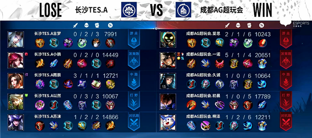 长沙TES.A禁用:大乔、东皇太一、不知火舞、橘右京