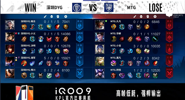 1分57秒,深圳DYG破掉MTG上一塔,随后拿下暴君。2分20秒,MTG破掉深圳DYG下一塔。2分45秒,虞姬和马可波罗下路互换。4分09秒,MTG上路击杀蒙恬。5分50秒,深圳DYG破掉MTG下一塔。6分22秒,深圳DYG拿下主宰。7分32秒,MTG破掉深圳DYG上一塔。7分45秒,下路团,深圳DYG打出0换2。8分22秒,中路团,双方打出1换1。8分55秒,深圳DYG拿下暴君。9分34秒,深圳DYG破掉MTG上二塔,中路团,深圳DYG击杀王昭君后破掉MTG中一塔。10分3秒,深圳DYG拿下暗影暴君,随后MTG镜像控下暗影主宰。11分43秒,深圳DYG破掉MTG下二塔。13分19秒,深圳DYG破掉MTG中二塔,随后MTG破掉深圳DYG上二塔。14分20秒,深圳控下暗影主宰。15分59秒,深圳DYG镜抢下暗影暴君。17分15秒,深圳DYG破掉MTG中路高地塔,随后MTG击杀苏烈。18分42秒,野区团,深圳DYG打出0换1。19分50秒,下路团,双方打出1换1。21分15秒,深圳DYG控下风暴龙王。22分19秒,高地团,深圳DYG破掉MTG上路高地塔打出2换2,随后一举摧毁水晶连下两城。