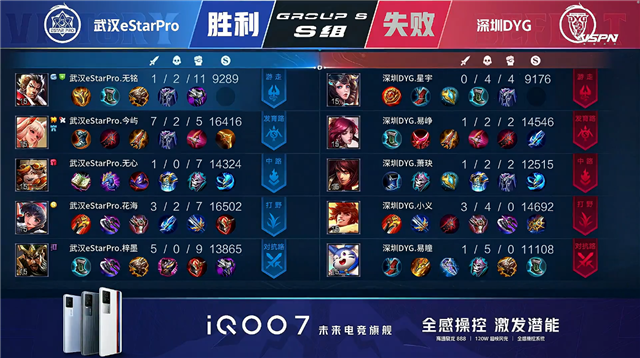 武汉eStarPro选用:马超、阿古朵、周瑜、蒙犽、鬼谷子