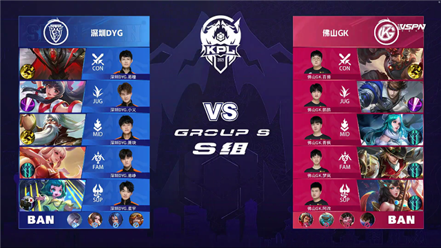 双方平稳开局,2分43秒深圳DYG拿下第一条暴君。5分19秒佛山GK拿下先知主宰,6分钟深圳DYG下路一塔被破。6分51秒深圳DYG拆掉佛山GK中路一塔,佛山GK摧毁深圳DYG上路一塔。8分37秒佛山GK拆掉深圳DYG下路二塔,10分42秒佛山GK拿下暗影暴君。11分47秒团战深圳DYG姜子牙击杀王昭君拿下一血,双方1换1。12分54秒深圳DYG拿下暗影主宰并击杀娜可露露,13分20秒佛山GK拆掉深圳DYG中路一塔。13分40秒佛山GK打出0换3,拆掉深圳DYG上路二塔,14分06秒佛山GK拆掉深圳DYG上路高地。15分20秒深圳DYG拿下暗影暴君,拆掉佛山GK中上路二塔。16分52秒团战佛山GK打出1换4,17分20秒佛山GK带领上路兵线一波摧毁深圳DYG水晶。