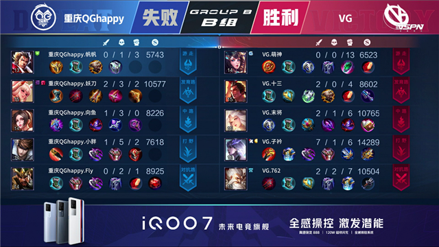 JRS直播网讯 5月3日2021KPL春季赛常规赛第七周第一日第一场比赛,由B组的重庆QGhappy对阵VG,以下是本场比赛快讯。