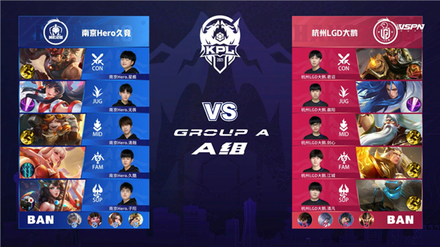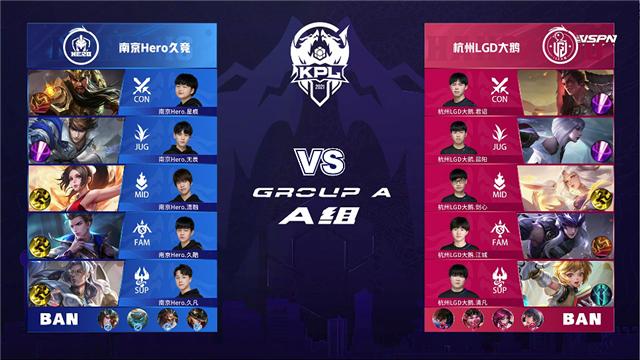 JRS直播网讯 4月25日2021KPL春季赛常规赛第五周第五日第一场比赛,由A组的南京Hero久竞对阵杭州LGD大鹅,以下是本场比赛快讯。