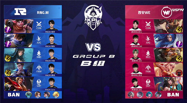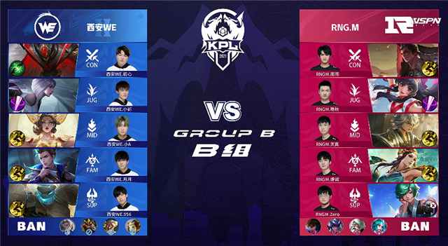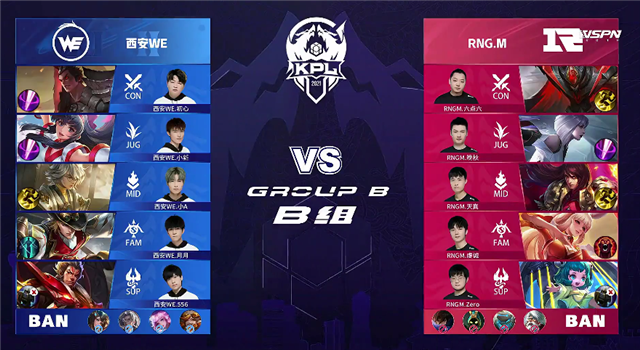JRS直播网讯 4月24日2021KPL春季赛常规赛第五周第四日第三场比赛,由B组的西安WE对阵RNG.M,以下是本场比赛快讯。