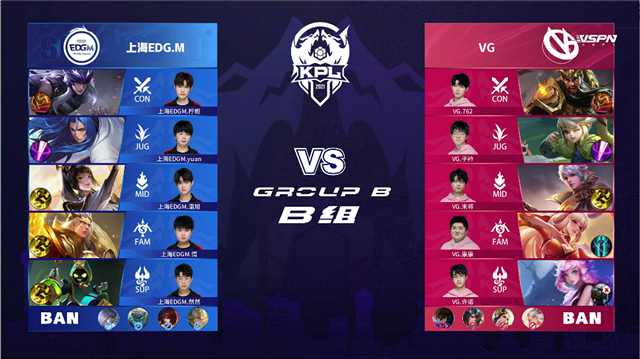 JRS直播网讯 4月23日2021KPL春季赛常规赛第五周第三日第二场比赛,由B组的VG对阵上海EDG.M,以下是本场比赛快讯。