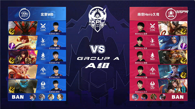 JRS直播网讯 4月23日2021KPL春季赛常规赛第五周第三日第一场比赛,由A组的南京Hero久竞对阵北京WB,以下是本场比赛快讯。