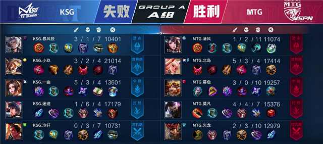 JRS直播网讯 4月22日2021KPL春季赛常规赛第五周第二日第一场比赛,由A组的MTG对阵KSG,以下是本场比赛快讯。