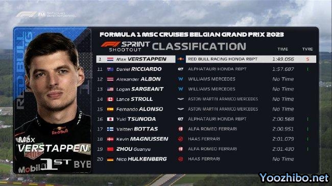 - 【录像】[腾讯] 2023F1比利时大奖赛 冲刺排位赛 SQ12023-07-29 21:14:00