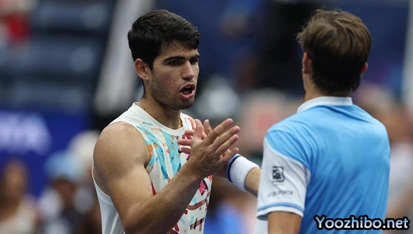 第三盘第3局阿尔卡拉斯发球局失守,随后他在第4局迅速完成回破。第10局阿尔卡拉斯在对方全场没有退路的一局连下4分破发,6-4赢下了第三盘比赛。