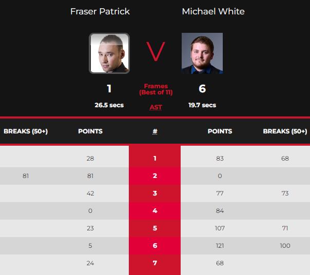 - 【录像】[咪咕原声]世锦赛资格赛第1轮 帕特里克vs迈克尔-怀特 全场录像2022-04-05 09:12:06