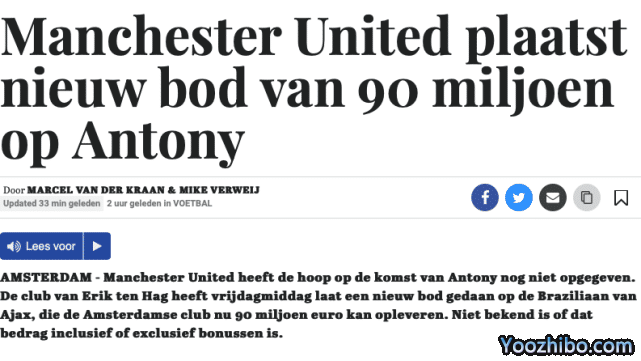 来源:24直播网08-27 08:4924直播网08月27日讯,来自荷兰电信报著名记者Mike Verweij的最新消息,英超豪门曼联俱乐部已经向阿贾克斯提出了第3份报价求购安东尼。